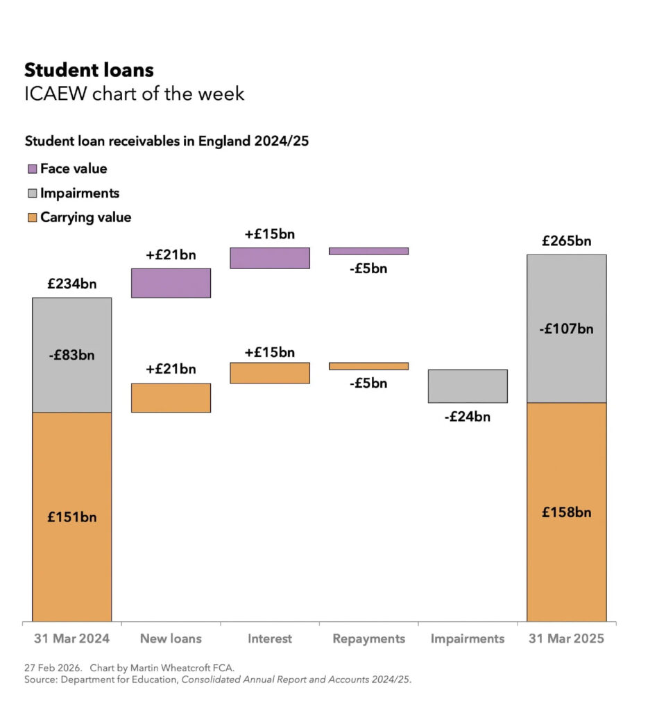 My chart for ICAEW this week looks at how the Department for Education has impaired 40% of the value of its student loans outstanding as at 31 March 2025.
